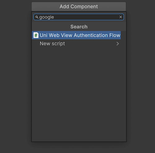 . Add a new script component to the same game object where the UniWebViewAuthenticationFlowGoogle