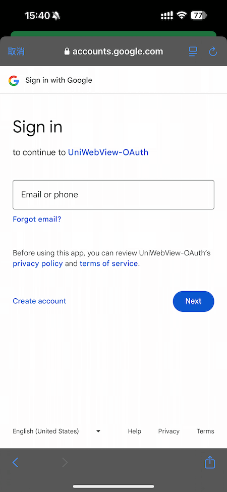 var googleFlow = GetComponent<UniWebViewAuthenticationFlowGoogle>();