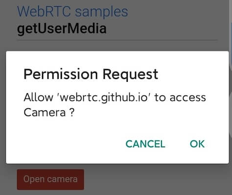 Now, when you load a page that uses WebRTC, the web page will prompt the user to allow the hardware access.